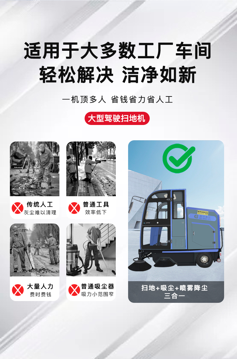 現(xiàn)在工廠的清潔方式發(fā)生了很大的變化了,不再是拿著個掃把清掃地面了,而是用機械代替了,不管是工廠車間內(nèi)還是廠區(qū)都是使用機器設(shè)備做